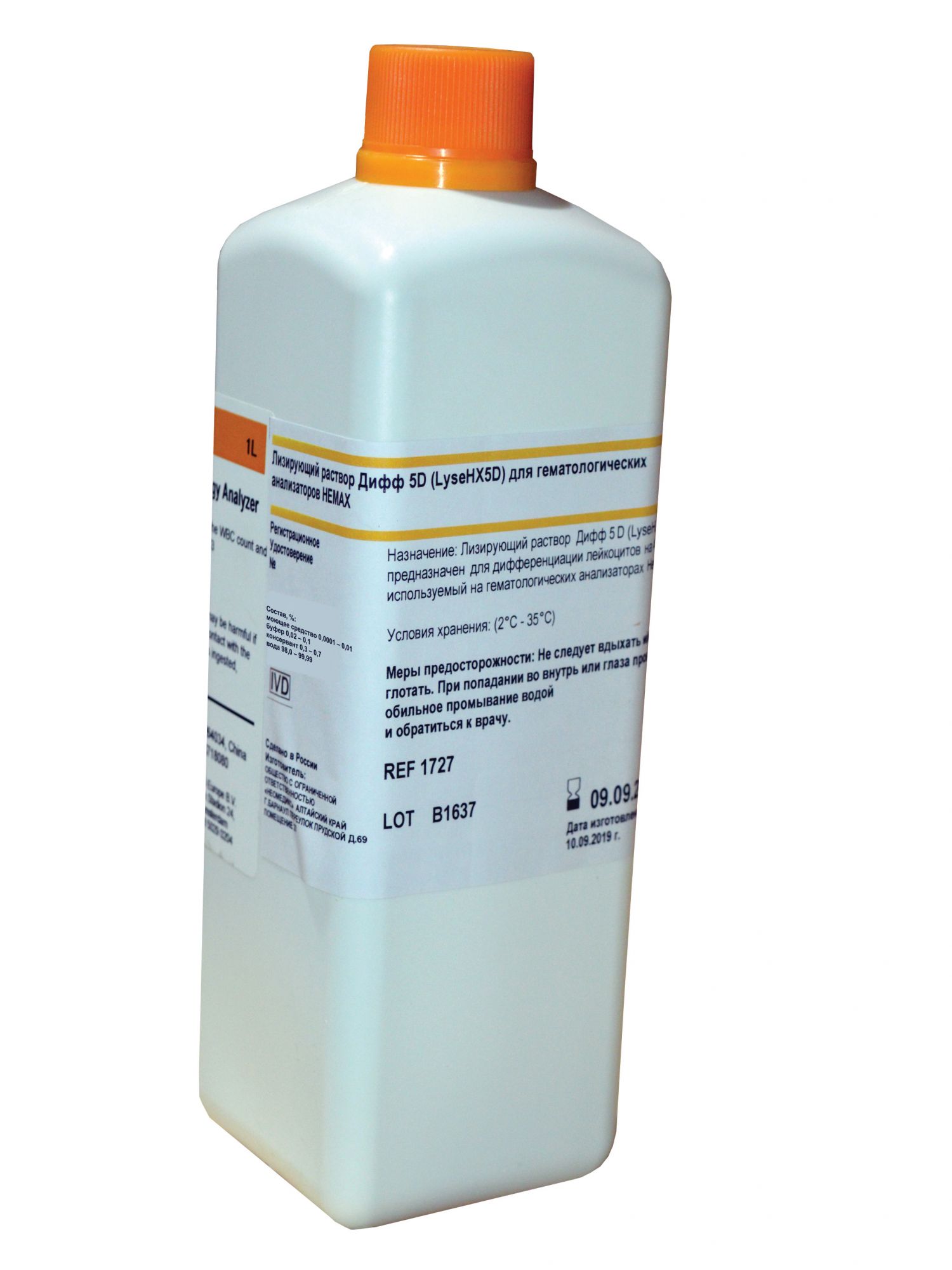 Лизирующий раствор Дифф 5D (Lyse-HX5D) расфасован во флаконы объемом 1,0 л.