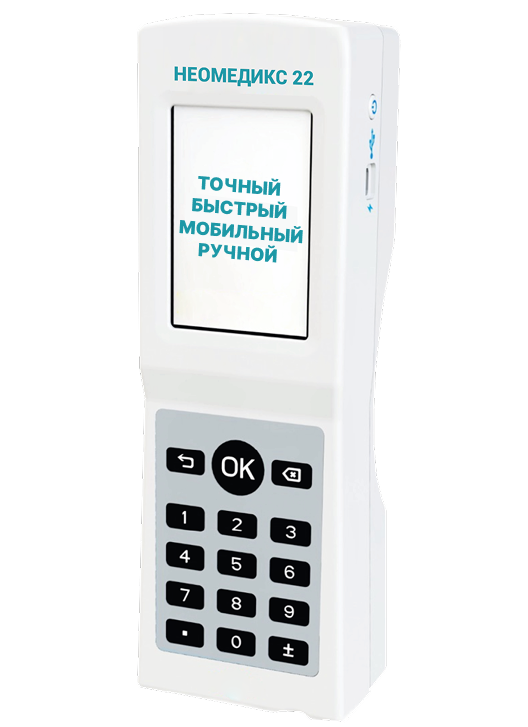 «НЕОМЕДИКС 22» — комплексная лабораторная диагностика у постели пациента, позволяющая исследовать газы крови, электролиты, гематокрит и метаболиты по артериальной, венозной и капиллярной цельной крови. Применяется метод анализа на основании электрохимического принципа сухого типа. Для работы необходим тестовый картридж.Портативный анализатор газов крови, электролитов, гематокрита, метаболитов НЕОМЕДИКС 22 представляет собой компактное, легкое и простое в использовании устройство, которое обеспечивает быстрый анализ образцов цельной крови. Аппарат оснащён сенсорным цветным дисплеем, встроенным термопринтером и интерфейсами для передачи данных в лабораторную или клиническую информационную систему.