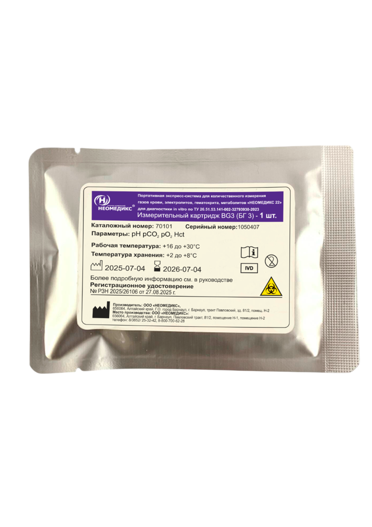 Картридж тип: БГ 3 (BG 3)  — измерительный картридж для анализатора газов крови "НЕОМЕДИКС 22"